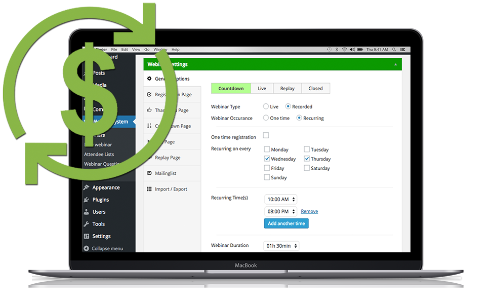 You can run ‘Recurring’ webinars, by choosing the day and time occurrence. This will make the whole webinar process run automatically (24/7). Without you even being there, your webinar will run evergreen. Running a sales webinar which generates income or new clients? Now you can generate this on autopilot, even when you are asleep!