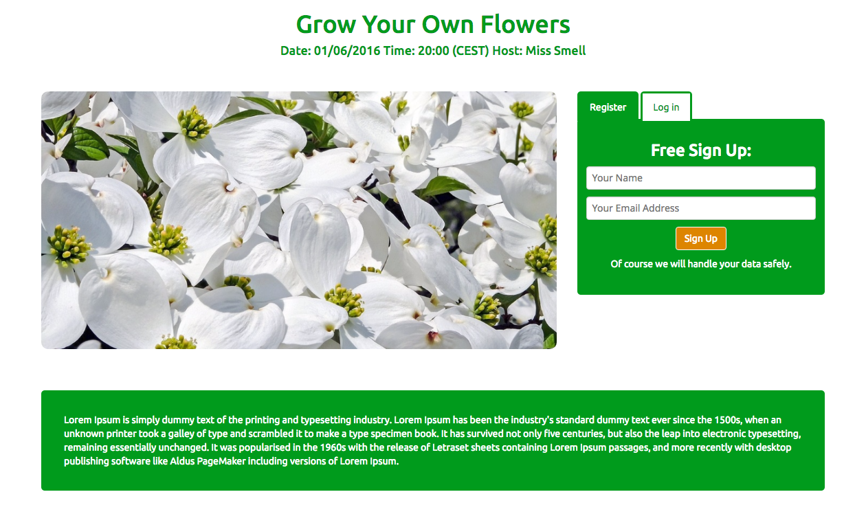 Flowers – Registration Page