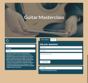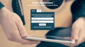 The theme is called ‘GuitarClass’, but you can use it for anything. Just adjust the guitar photo to something else which fits the color combination and you are good to go! You can download the webinar theme below.