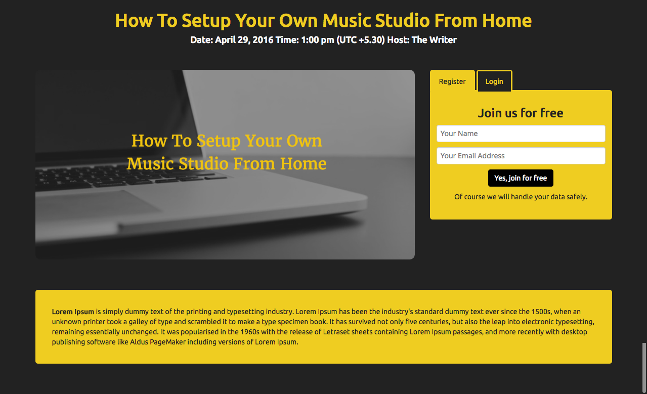 Registration page